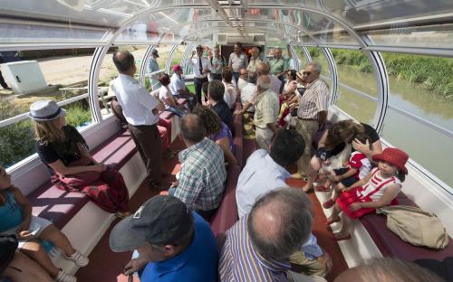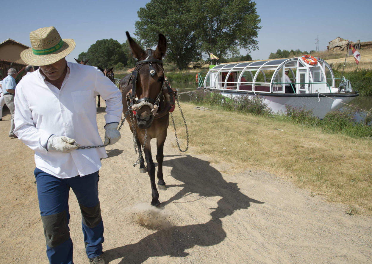 Arrastre del Barco San Carlos de Abánades por mulas en el Canal de Castilla en Melgar de Fernamental y homenaje al ultimo hombre que realizo un arrastre.