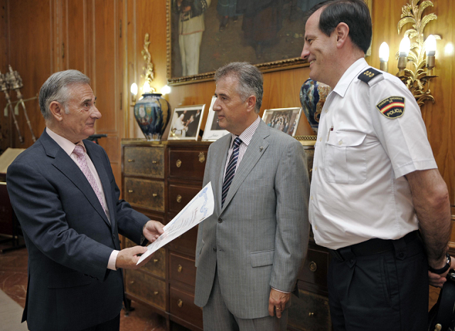 El presidente de la Diputación Provincial de Burgos, Vicente Orden Vigara, recibe del jefe Superior de Policía de Castilla y León, Jesús García Ramos, la Medalla de la Cruz al Mérito Policial.