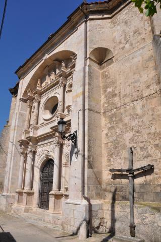 Con restos románicos, la fábrica del templo es del siglo XVI y presenta tres naves sobre pilares columnarios. El retablo mayor, de estilo protobarroco, aparece presidido por una talla de Santiago a caballo.
