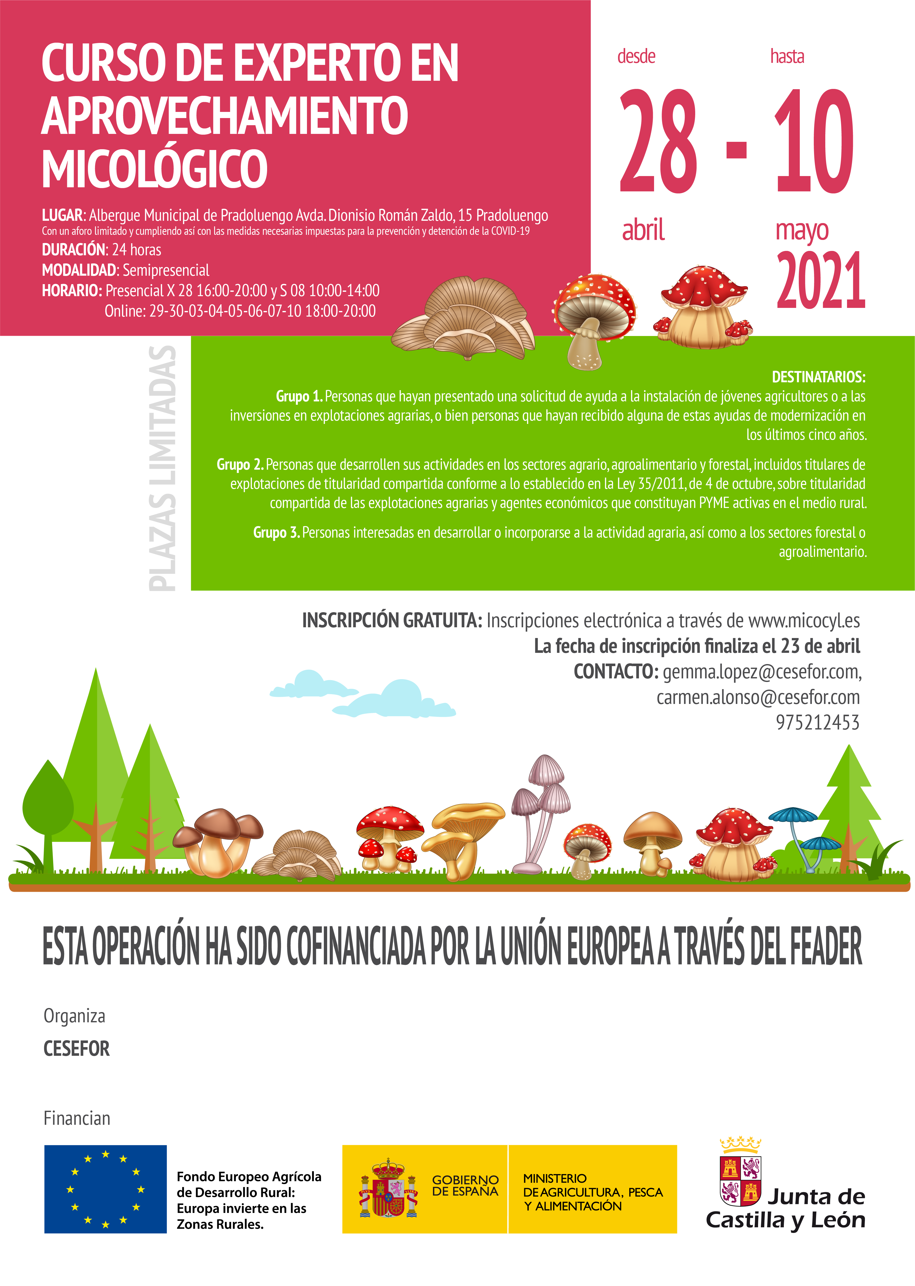 - Curso de experto en aprovechamiento micológico (Pradoluengo, del 28 de abril al 10 de mayo)