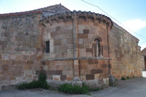 Posee en su interior una pila bautismal con delicada ornamentación románica.
